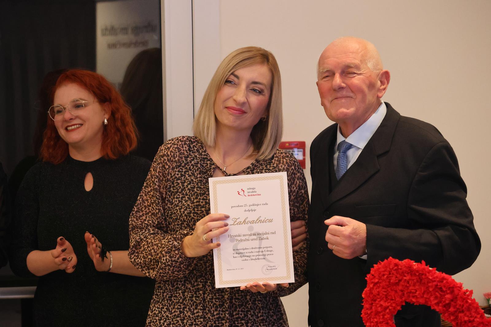 Na svečanosti su bili zamjenica župana Jasna Petek i predsjednik Županijske skupštine Ivan Hanžek, koji su predsjedniku Bureku uručili zahvalnicu koju je župan Željko Kolar Udruzi dodijelio za dugogodišnji predani rad na poboljšanju kvalitete života osoba s invaliditetom te doprinos razvoju humanosti i zajedništva u lokalnoj zajednici.