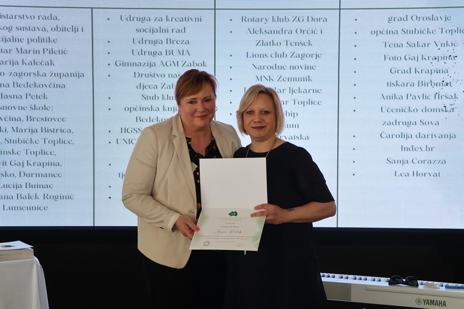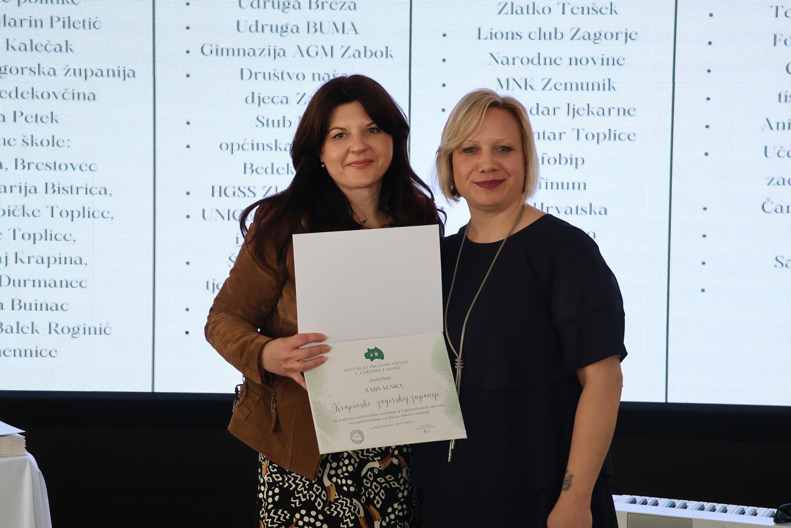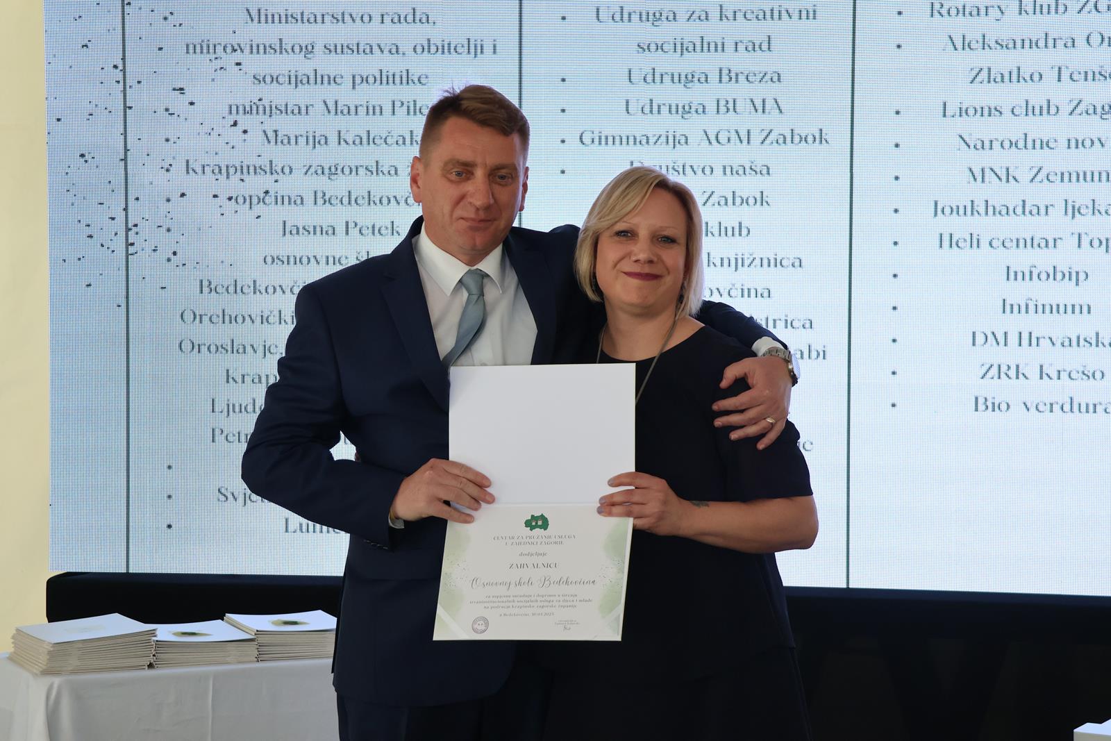 Centar koji je ovogodišnji dobitnik povelje Krapinsko-zagorske županije svečanim je slavljem obilježio osam desetljeća kontinuiranog rada te službeni završetak EU projekta “Zajedno stvaramo našu bajku”, a velikoj je obljetnici prisustvovala i zamjenica župana Jasna Petek. “Ono što se ovdje učinilo, prije svega, nosi se na različite infrastrukturne promjene i prostorne mogućnosti koje su sada daleko veće. Ono što je nadahnjujuće za sve nas, to je ta preobrazba koju ste učinili na sebi, kako ste se osnažili, ohrabrili i kako pružate socijalne usluge za mnoge korisničke kategorije koje nisu pokrivene u ostalim našim ustanovama ili od ostalih pružatelja socijalnih usluga”, poručila je zamjenica Petek i dodala kako je doprinos Centra kod izrade Socijalnog plana Krapinsko-zagorske županije nemjerljiv. “Na svemu tome vam veliko hvala. Naš socijalni plan ima još niz socijalnih usluga koje nadam se da ćemo zajedno pokriti jer vi imate točnost, znanje, volju, ljubav i entuzijazam, a to je najvažnije”, istaknula je zamjenica Petek i dodala kako je institucija svijetli primjer u čitavoj Hrvatskoj. “Sačuvajte svoj entuzijazam, svoju ljubav, svoje znanje gradite i dalje, svoje iskustvo jer vi ste zapravo oni koji ste velika šansa za male i mlade u našoj županiji. Hvala vam na tome, a mi smo tu da zajedno s vama pružamo sve ono najbolje od sebe upravo za njih”, zaključila je zamjenica Petek.