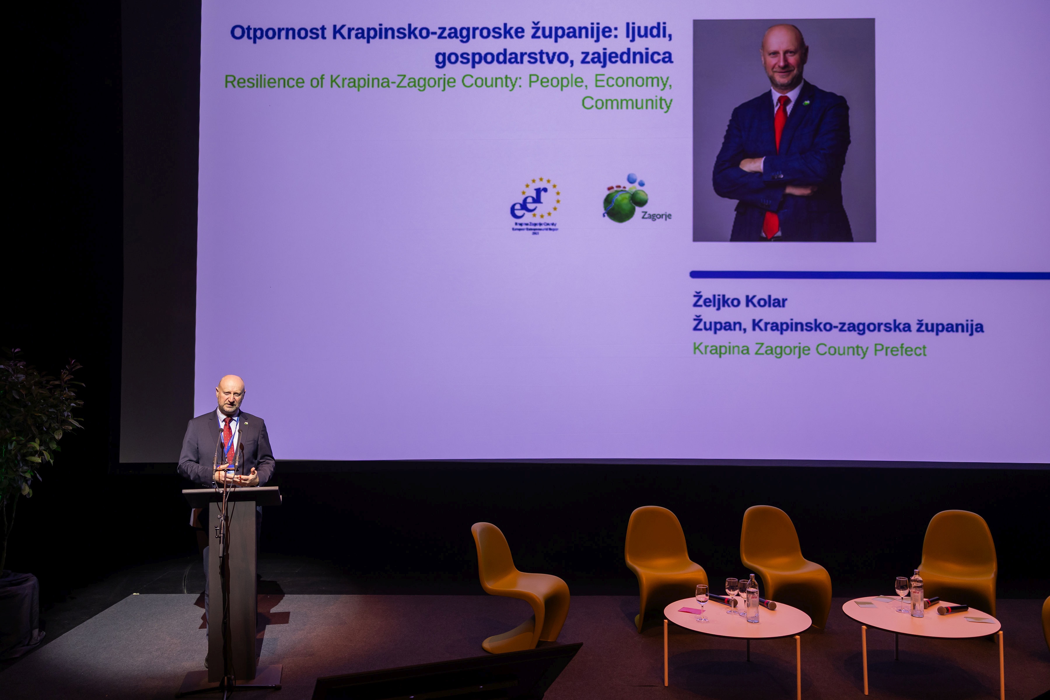 Krapinsko-zagorska županija, istaknuo je župan Željko Kolar, ima jasno zacrtane ciljeve, viziju i strategiju dolaska do cilja. “Znamo što radimo, što želimo i kuda idemo, a polako, ali sigurno, dolaze rezultati. Uvijek za sebe možete smatrati da ste dobri, ali to treba potvrditi i netko drugi. Odlično je ako je to prepoznato na nacionalnoj razini, a osobito na europskoj ili svjetskoj”, kazao je župan Kolar i podsjetio kako je Krapinsko-zagorska županija titulu ponijela zajedno s regijom Galicija iz Španjolske i Mazowieckie vojvodstvom iz Poljske. “Galicija ima 2,5 milijuna stanovnika, Mazowieckie vojvodstvo broji 5 milijuna, a mi smo u njihovom društvu. To samo po sebi puno govori, da i u manjim sredinama, ako imaš kvalitetne ljude, projekte, ako si uporan, ako radiš i ako vjeruješ u ono što radiš, onda možeš imati i odličan rezultat”, kazao je župan Željko Kolar te naglasio kako je Summit održan u Zagrebu jer titula Europske poduzetničke regije ima veliku važnost za čitavu Republiku Hrvatsku.