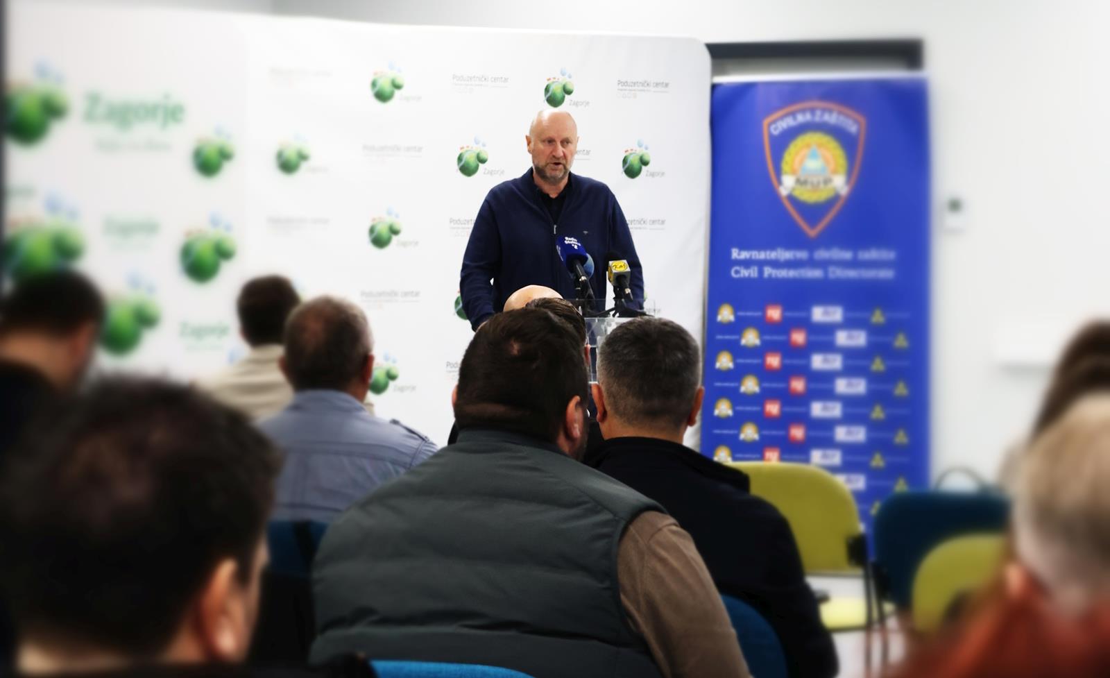 Brojnim okupljenima u županijskom Poslovno tehnološkom inkubatoru obratio se župan Željko Kolar te istaknuo kako je u sanaciju klizišta na području Krapinsko-zagorske županije od 2013. uloženo preko 8 milijuna eura, od čega se čak 70 posto odnosi na županijska sredstva. „To su sredstva koja smo mogli uložiti u modernizaciju cesta i komunalnu infrastrukturu, no morali smo ih usmjeriti na sanacije. Još veći problem imaju općine i gradovi koji nemaju fiskalni kapacitet za takve zahvate“, upozorio je župan Kolar te istaknuo potrebu bolje kontrole prostornog planiranja, posebno s obzirom na činjenicu da županija ima više od 6500 potencijalnih lokacija klizišta. “Moramo poštivati prirodu i drugačije projektirati. Ljudi koji bespravno grade moraju biti svjesni da preuzimaju rizik“, naglasio je župan, dodavši da Županija u novom prostornom planu posebnu pažnju posvećuje detekciji i prevenciji klizišta.