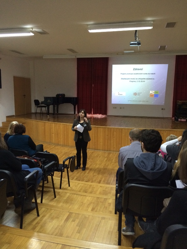 Radionici su prisustvovali učenici sedam srednjih škola iz Krapinsko-zagorske županije (Srednja škola Krapina, Gimnazija A.G.Matoša Zabok, Srednja škola Bedekovčina, Srednja škola Konjšćina, Srednja škola Oroslavje, Srednja škola Zabok, Srednja škola za umjetnost, dizajn, grafiku i odjeću Zabok), koji su tokom današnjeg dana raznim prezentacijama i radionicama pripremljeni za volontiranje na ovom projektu koji se provodi i u pet srednjih škola s područja Grada Zagreba.