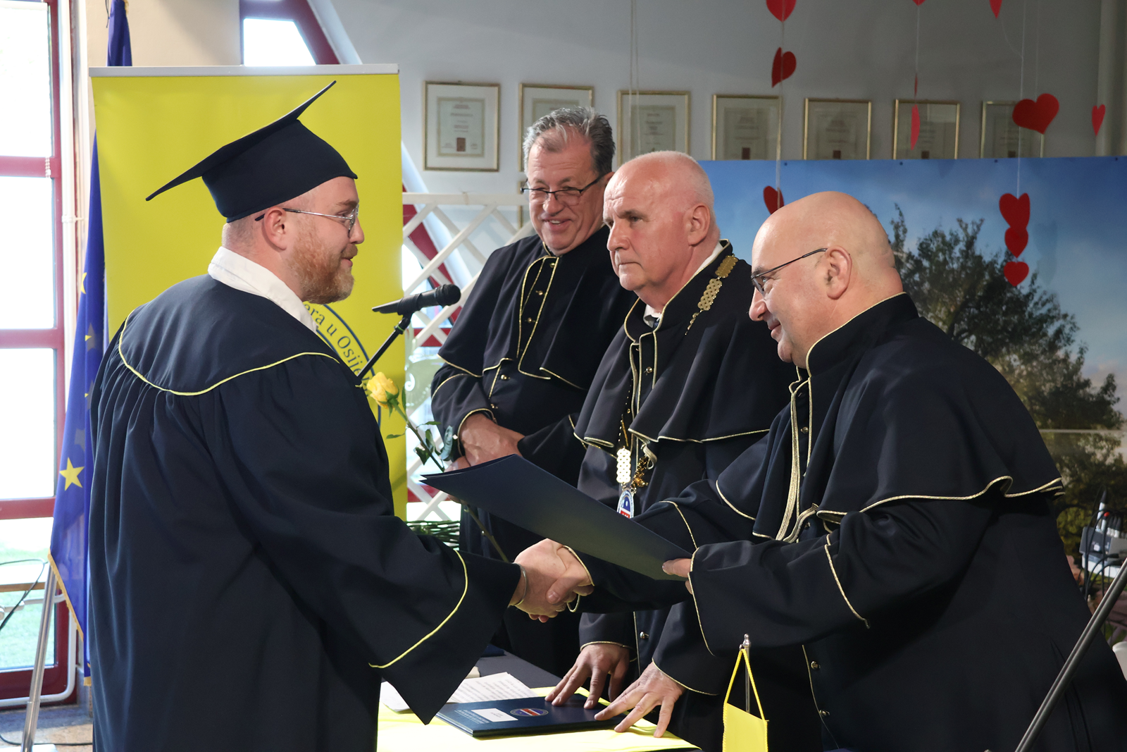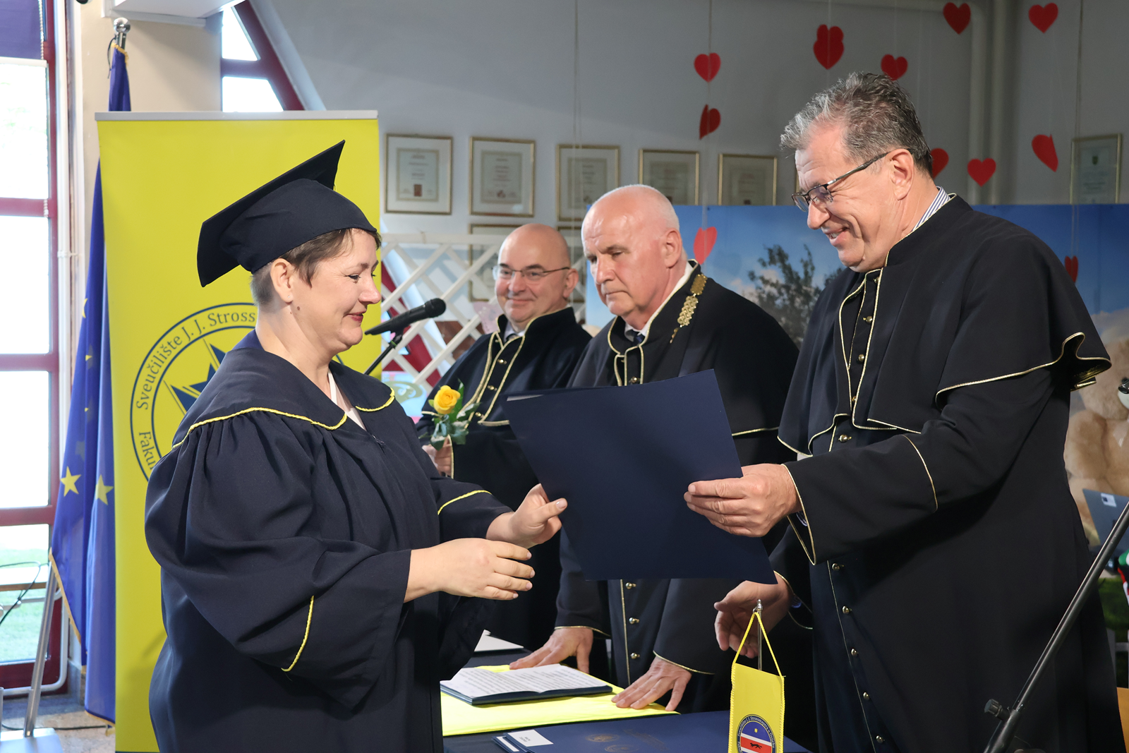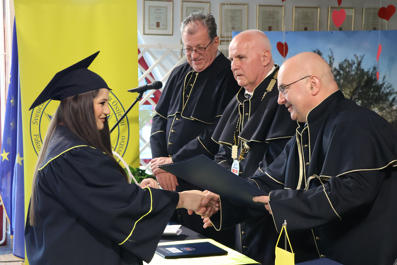 Svečanoj promociji prvostupnica i prvostupnika sestristva prisustvovala je i zamjenica župana Jasna Petek. “Zanimanje medicinske sestre izuzetno je odgovorno i zahtjevno, ali ono što ste naučili na ovom fakultetu je struka i znanje. Međutim, za vaše zanimanje je izuzetno i važno ono što nosite unutra, a to je veliko srce, empatija, toplina i razumijevanje prema vašim pacijentima. U Krapinsko-zagorskoj županiji na razini primarne zdravstvene zaštite imamo 6 zdravstvenih ustanova, 1 bolnicu i 2 specijalne bolnice. U našem zdravstvenom sustavu radi više od 2500 ljudi od kojih je oko 1500 medicinskih sestara što znači da veliki dio našeg zdravstva činite upravo vi i stoga ste nam izuzetno važni. Medicinske sestre svih stupnjeva deficitarno su zanimanje u Krapinsko-zagorskoj županiji i ostalim županijama stoga vam se zahvaljujemo što ste se odlučili na podizanje vaših kompetencija.”, istaknula je zamjenica Petek. Fakultet za dentalnu medicinu i zdravstvo Sveučilišta Josipa Jurja Strossmayera u Osijeku je počeo s radom na području Krapinsko-zagorske županije u 2010. godini kada se u prostorijama Srednje škole Pregrada počeo održavati dislociran izvanredni sveučilišni preddiplomski studij sestrinstva u sklopu fakulteta. U prosincu 2021. godine potpisan tripartitan ugovor između Fakulteta, Krapinsko-zagorske županije i Grada Pregrade, a u listopadu 2024. godine potpisan je ugovor vrijedan 486.000 EUR o kupoprodaji nekretnine bivše tvornice EMKA između Krapinsko-zagorske županije, Grada Pregrade i tvrtke Jedinstvo Krapina d.o.o. kojeg danas koriste Srednja škola Pregrada i Fakultet.