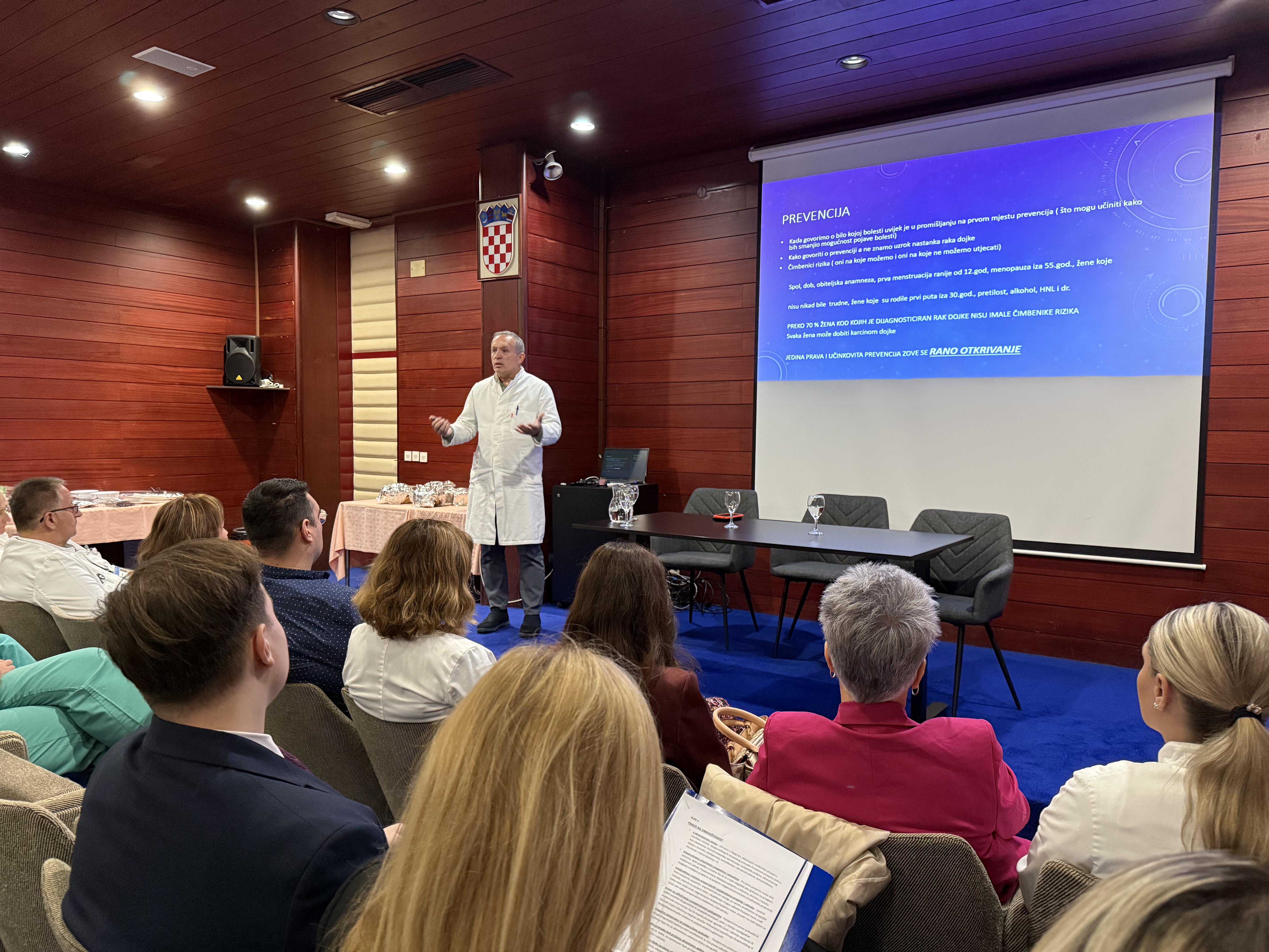 Okupljenima se obratio ravnatelj Specijalne bolnice Danijel Javorić Barić istaknuvši kako s velikim zadovoljstvom podržava organizaciju ovakvih skupova koji imaju iznimnu važnost za zajednicu jer doprinose podizanju svijesti o raku dojke, potiču građane na redovite preventivne preglede i promiču brigu o vlastitom zdravlju. Okupljene je pozdravio i predsjednik Lige protiv raka Hrvatsko zagorje Valentino Kuzelj koji je potom održao predavanje zajedno s glavnom tajnicom Gabrijelom Gradiški Barić na temu “Pravo na zdravlje i pravo na informirano odlučivanje o vlastitom liječenju”, a predavanje na temu “Važnost ranog otkrivanja raka dojke” održao je liječnik Damir Plečko.